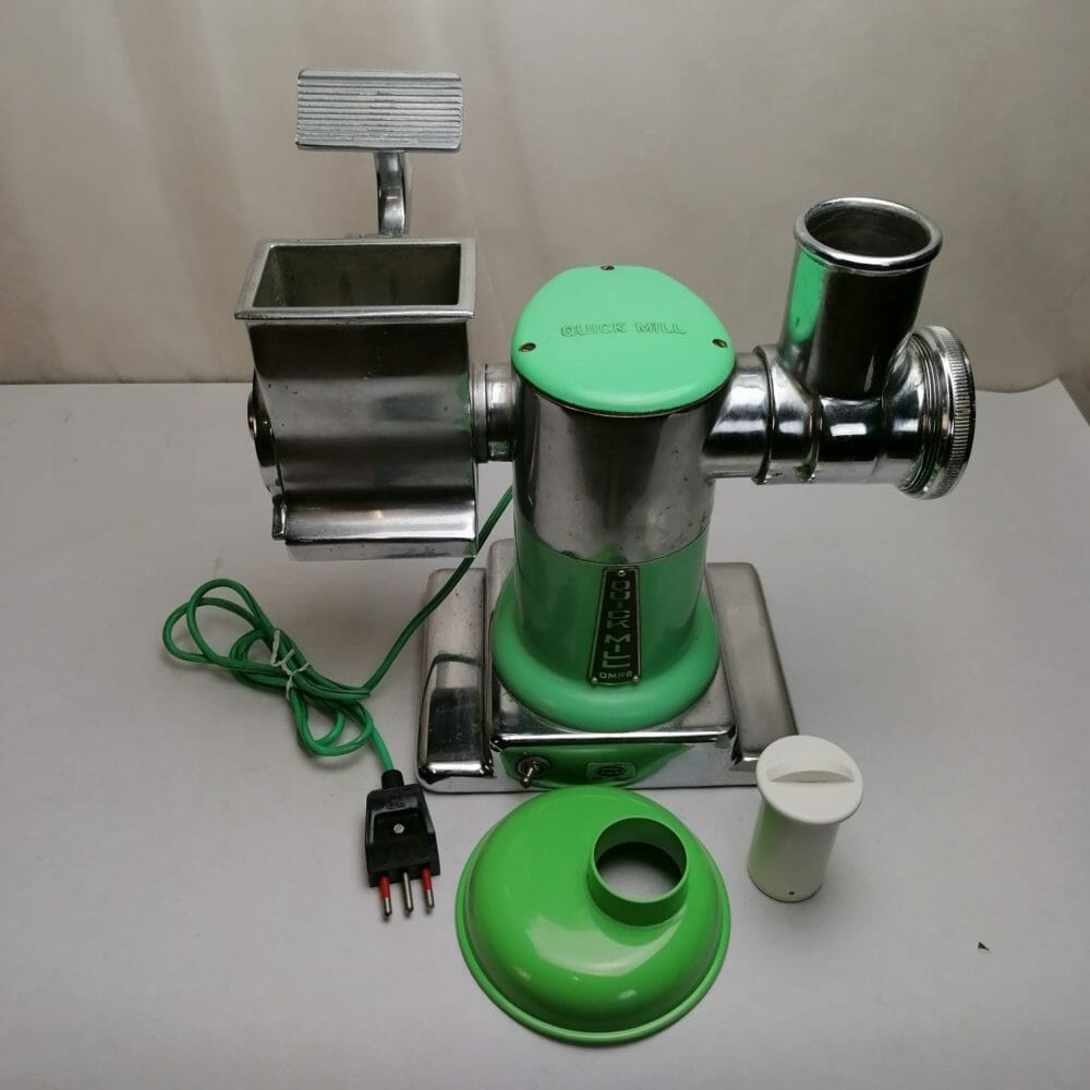 Tritacarne con grattuggia Quick Mill in buone condizioni. Manca il bicchiere in vetro e il cavo è leggermente spelato come da fotografia. Presente invece il pestello della tramoggia. Funzionante.