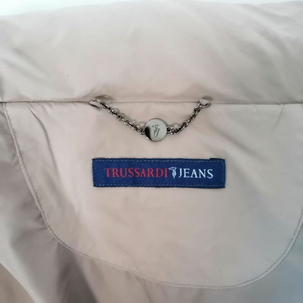 Trussardi Jeans, giacca imbottita leggera taglio aderente, colore taupe versatile e facile da abbinare.