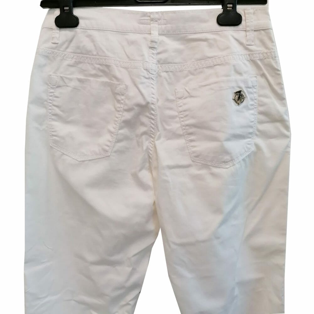 Trussardi Jeans, pantaloni leggeri bianchi, chiusura con zip, modello classico 5 tasche elasticizzato con gamba dritta. Cotone 97% elastan 3%