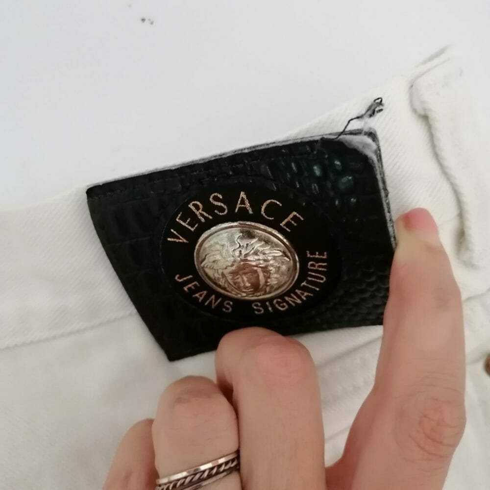 Versace jeans bianchi anni 90, modello classico non elasticizzato, gamba un po’ balloon.