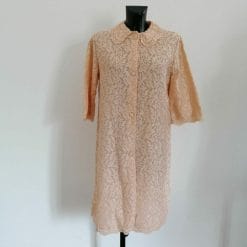 Vestaglia vintage anni 60 in pizzo, foderata, con bottoni ricoperti. Color rosa antico.