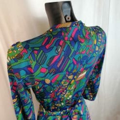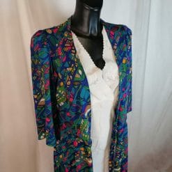 Vestaglia vintage coloratissima e versatile, talmente bella da potere essere indossata come vestito. Materiale sintetico.