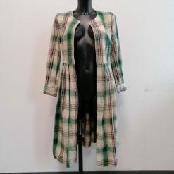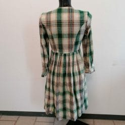 Eddie Pen bell’abito in flanella a quadri, allacciatura frontale con bottoni a pressione e due capienti tasche laterali. Scollatura tonda, taglio svasato facile da portare. Look un po’ retró da casa nella prateria, bello con un Cardigan e uno stivale in autunno ma anche con un maglione sopra e un cappotto in inverno.