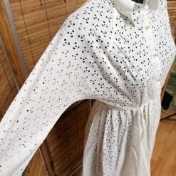 Vestito vintage sartoriale in cotone bianco, pizzo sangallo