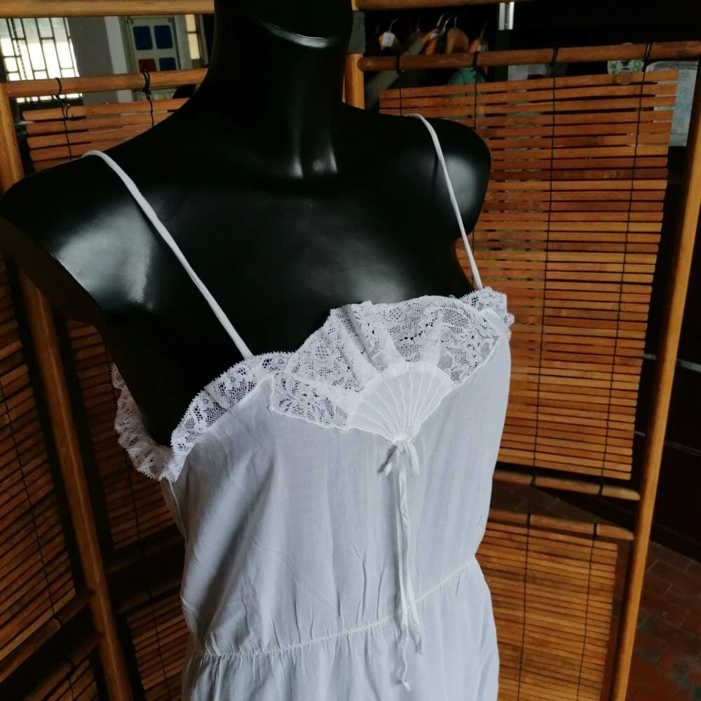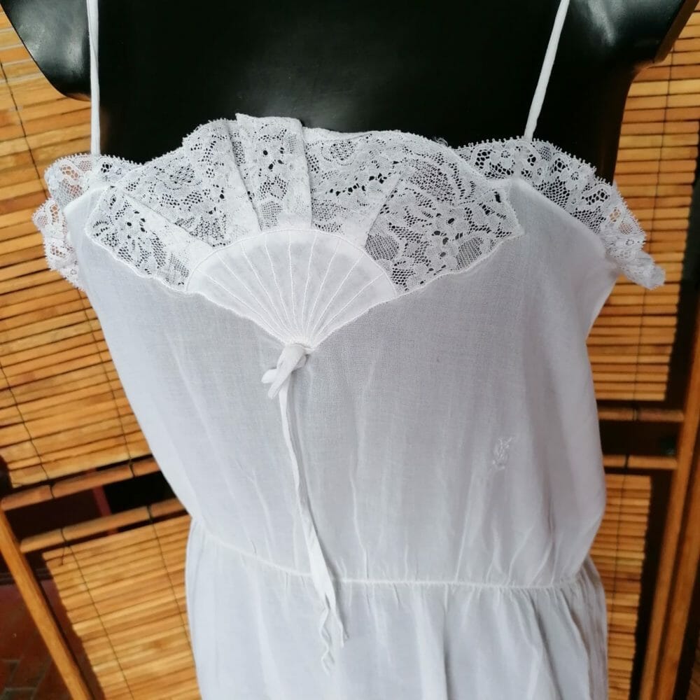 Yves Saint Laurent camicia da notte vintage in cotone con pizzo, spalline sottili. Tessuto impalpabile leggermente trasparente.