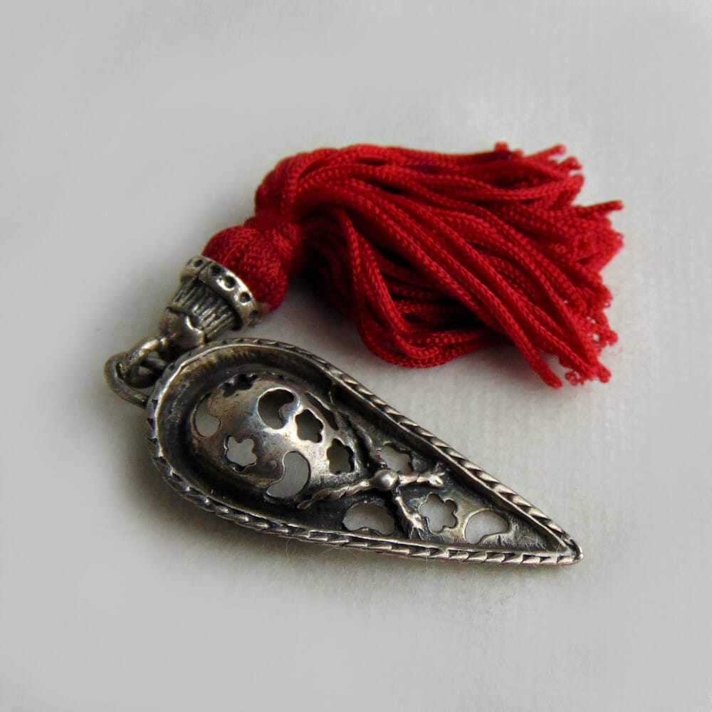 Riproduzione in argento 800 di una feluca, il tradizionale cappello universitario che identifica attraverso il diverso colore le varie facoltà. Con il suo fiocchetto rosso si presta anche come simpatica idea regalo per studenti e laureandi.